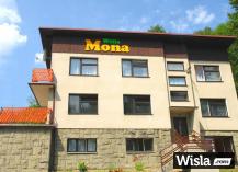Willa Mona usytuowana jest w odległości 5 minut spacerem od Rynku Wisły. Oferuje gościom 2, 3 i 4 osobowe pokoje gościnne z łazienkami oraz aneksami kuchennymi na korytarzach. Obiekt dysponuje dużym ogrodem z letnim basenem, mini placem zabaw, parkingiem. każdym z pokoi znajdują się duże i wygodne łóżka małżeńskie, szafy oraz szafki nocne, w niektórych pokojach znajdują się dodatkowe łóżka umożliwiające nocowanie dodatkowych osób.